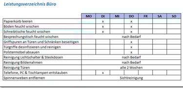 Reinigungsumfang nach Bedarf: Regelmäßige Unterhaltsreinigungen und/oder gelegentliche Grundreinigungen oder Spezialdesinfektionen