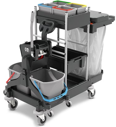 Vollausgestatteter Reinigungswagen für eine effiziente, organisierte und hygienische Reinigung